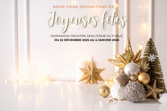 Fermeture vacances de Noël Toute l'équipe de Normandie Pédiatrie vous souhaite de belles fêtes de fin d'année !